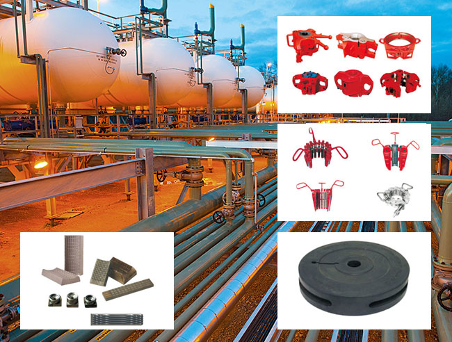 We are a major stockist of rubber products used in mud pumps. These includes mud pump parts, urethane bladders, urethane wheels, well service packings & gaskets, rubber moulded products, plunger pump parts, mud pump expendables, liners and mud pump pistons etc. We stock other rubber products such as BOP parts, pipe wipers (dual split, solid type, kelly), pulsation dampener replacement kits, casing thread protectors, cementing plugs, well servicing products, cup testers, desanders & desilters etc.